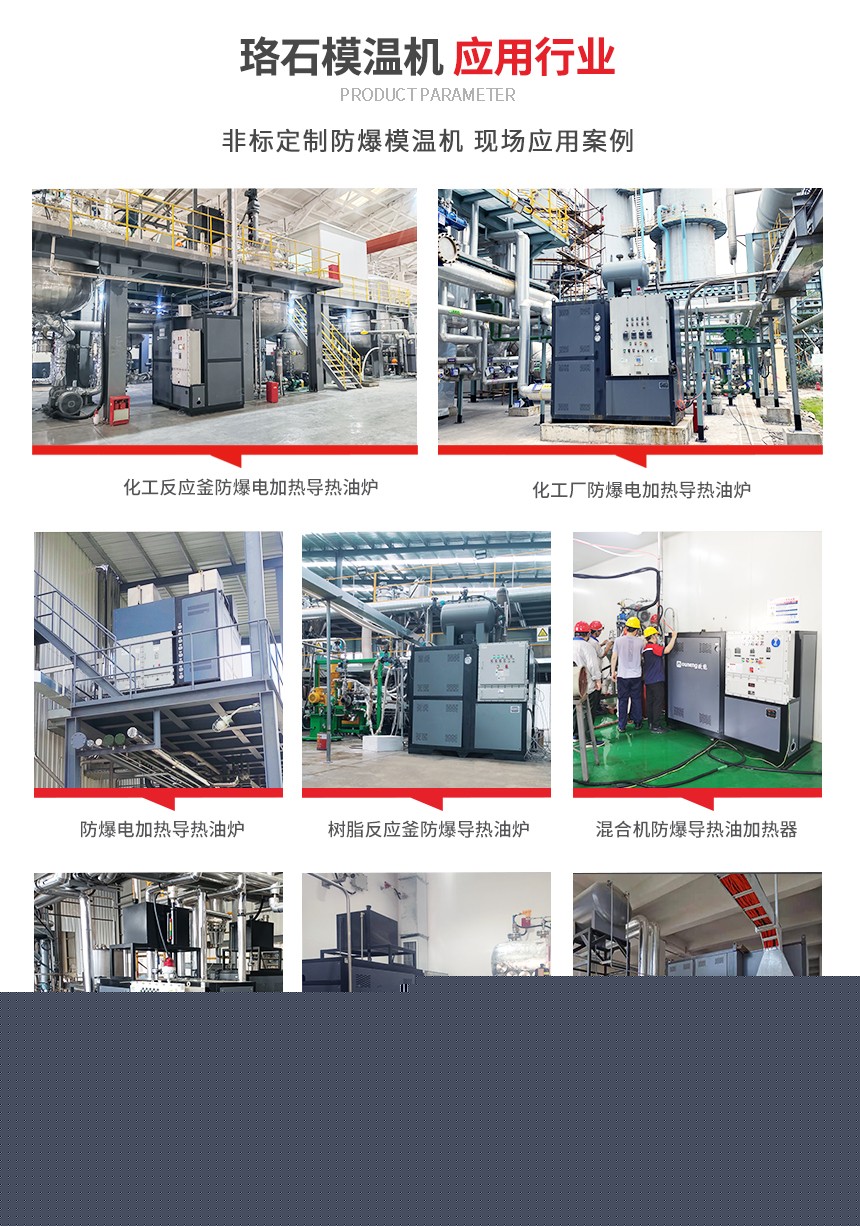 橡膠模溫機廣泛用于冷喂料橡膠擠出機、銷釘式冷喂料橡膠擠出機、雙復合橡膠擠出機組、復合胎面擠出機組、輪胎部件生產線、電纜設備生產線、塑料管材/型材擠出設備、螺桿式塑料擠出機、擠出機噴淋冷卻槽控溫等。