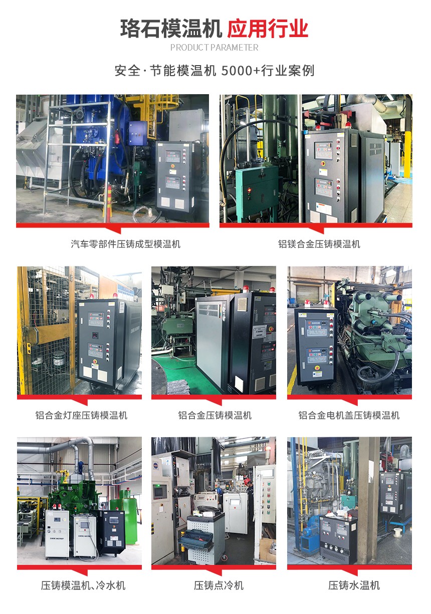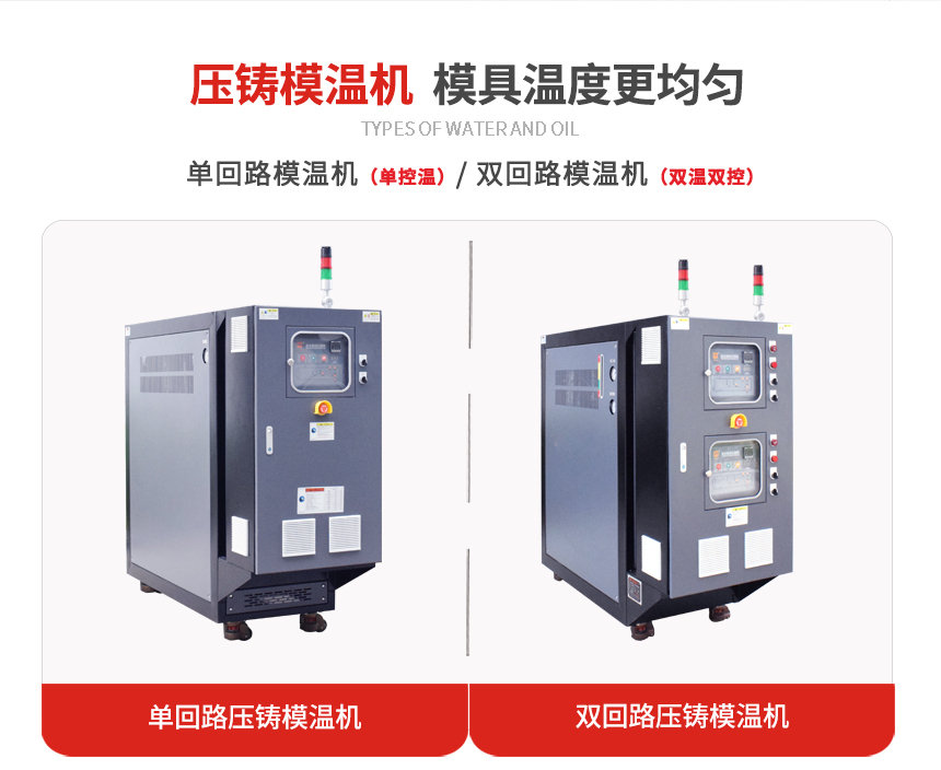 壓鑄行業使用壓鑄模溫機來提升工藝質量、提高生產效率、改善壓鑄件質量,使用壓鑄模溫機能夠有效地延長壓鑄模具的使用壽命,節約企業成本。